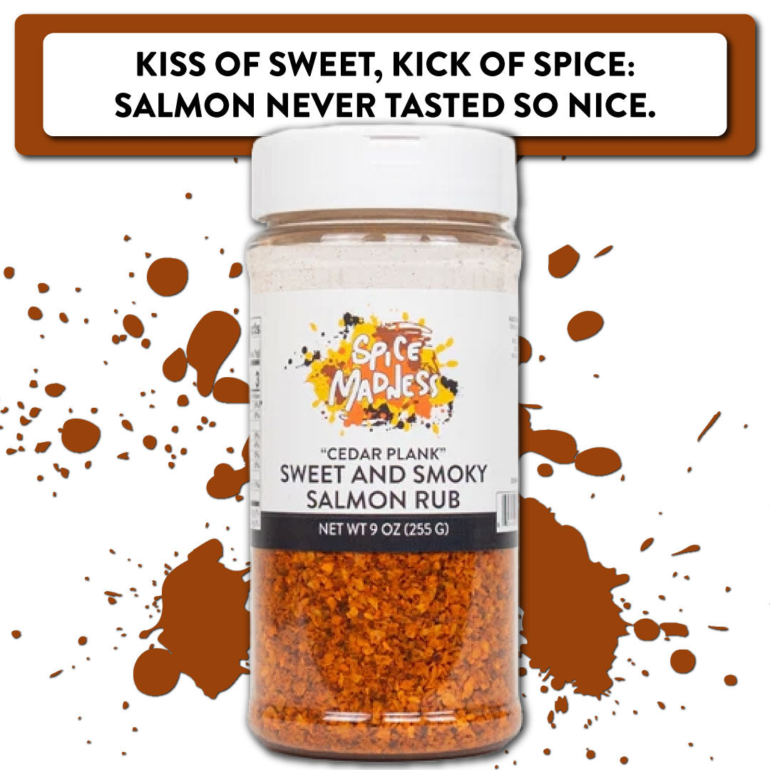 Cedar Plank Sweet & Smoky Salmon Rub: Indulge in the vibrant flavors of the Pacific Northwest with our unique blend of spices, infusing your salmon with a symphony of sweetness, smokiness, and savory depth.