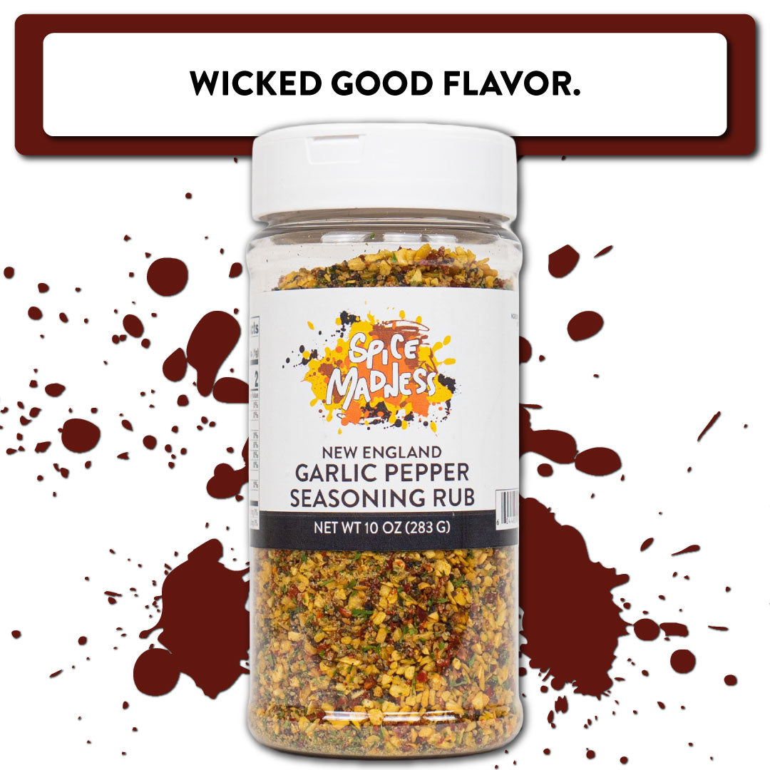 New England Garlic Pepper Rub: Immerse yourself in the rustic delights of New England with our bold blend of garlic and pepper, elevating your dishes to new heights.
