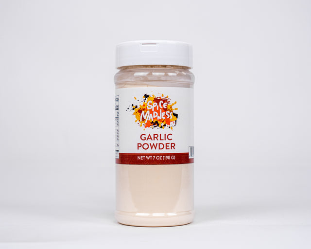 Spice up your kitchen with Spice Madness Garlic Powder! This 100% pure garlic adds a strong, aromatic flavor to any dish. Unlike fresh garlic, it's mess-free and shelf-stable. Sprinkle it on meats, vegetables, soups, or pasta for a savory punch that's slightly milder and sweeter than fresh.