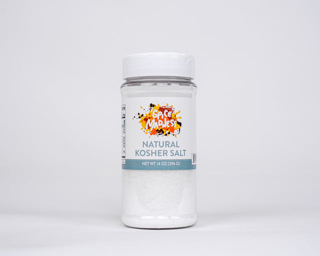 Spice Madness Kosher Salt is a coarse-grained, pure sodium chloride perfect for enhancing flavors in your cooking. Unlike table salt, it lacks iodine and anticaking agents, allowing its large flakes to distribute evenly and provide a milder, more controllable saltiness. Use Spice Madness Kosher Salt for seasoning meats and vegetables before cooking, or as a finishing touch to bring out the deliciousness in your favorite dishes.