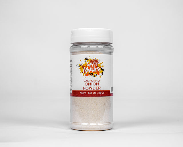 Grown in California! Spice Madness Onion Powder concentrates the intense flavor of onions into a convenient powder. Made from finely ground dried onions, it adds a powerful punch of savory goodness to any dish. Unlike fresh onions, Spice Madness Onion Powder won't make you cry, and it stores for a long time in your pantry. Perfect for soups, sauces, marinades, and even sprinkling on popcorn, Spice Madness Onion Powder adds a depth of flavor that will take your dishes to the next level.