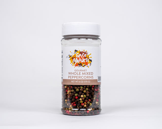 Unleash a symphony of flavor with Spice Madness Whole Mixed Peppercorns Grinder! This all-in-one grinder houses a vibrant blend of black, white, green, and pink peppercorns. Each color offers a unique twist – black for classic heat, white for a milder warmth, green for a fresh, citrusy kick, and pink for a touch of floral sweetness. Grind to your desired coarseness and elevate any dish with a complex peppery punch that's both intriguing and delicious. Spice Madness Whole Mixed Peppercorns Grinder: Freshness, flavor, and variety in every grind.